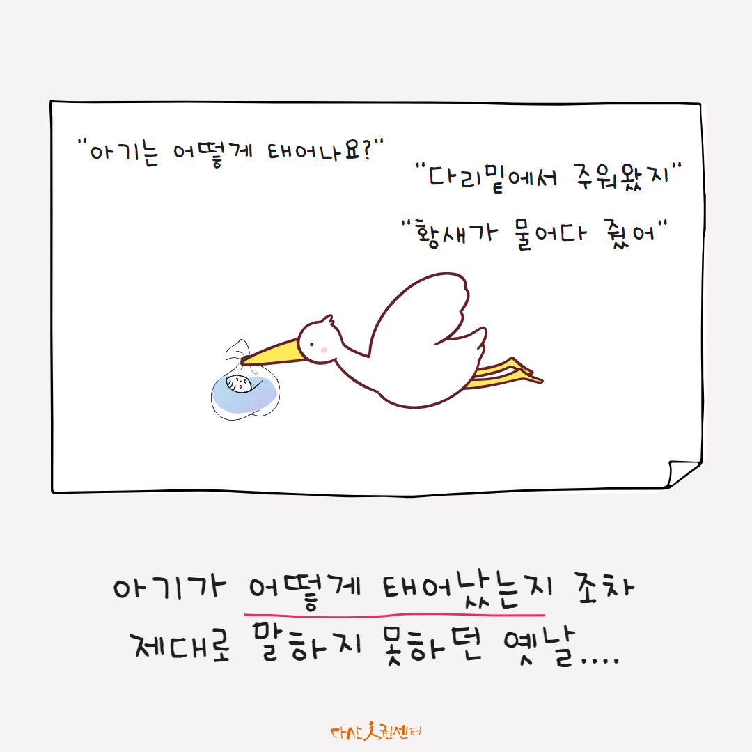 몇 년 전만 해도 우리 사회는 아기가 태어나는 방법을 물어보면 위와 같은 답을 했습니다.