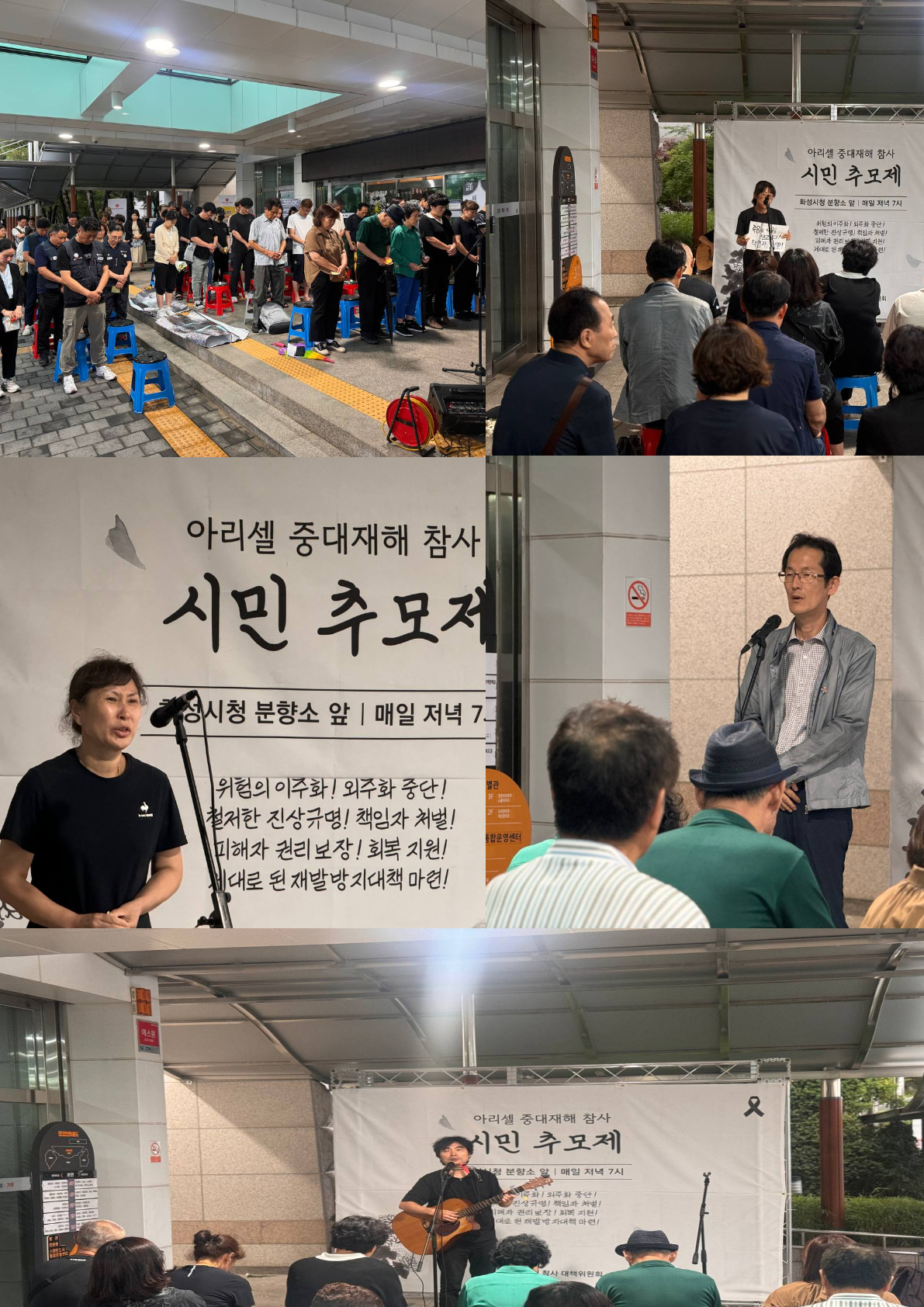 시민추모제는 월요일부터 금요일까지 저녁 7시에 화성시청 앞에서 진행됩니다. 이 참사에 대한 관심이 사그러들지 않도록, 제대로 된 진상규명과 책임자 처벌이 이뤄질 수 있도록 많은 분들께서 함께 해주시길 요청드립니다.