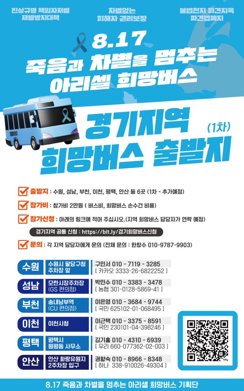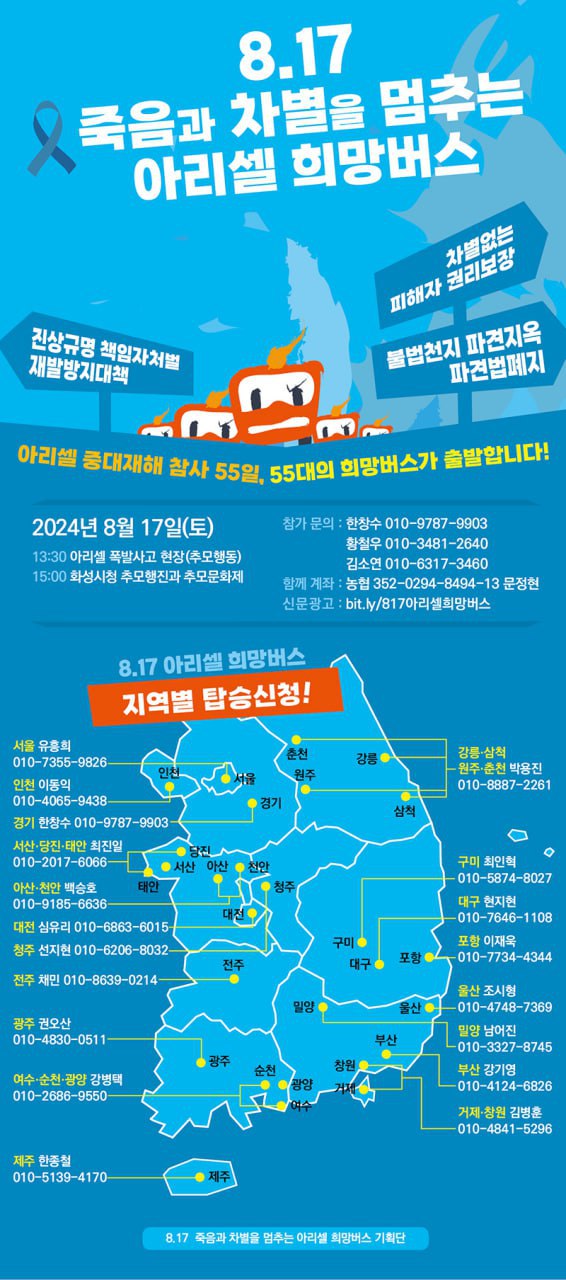 죽음과 차별을 멈추는 아리셀 희망버스가 이번 주 토요일(17일)에 화성으로 출발합니다.