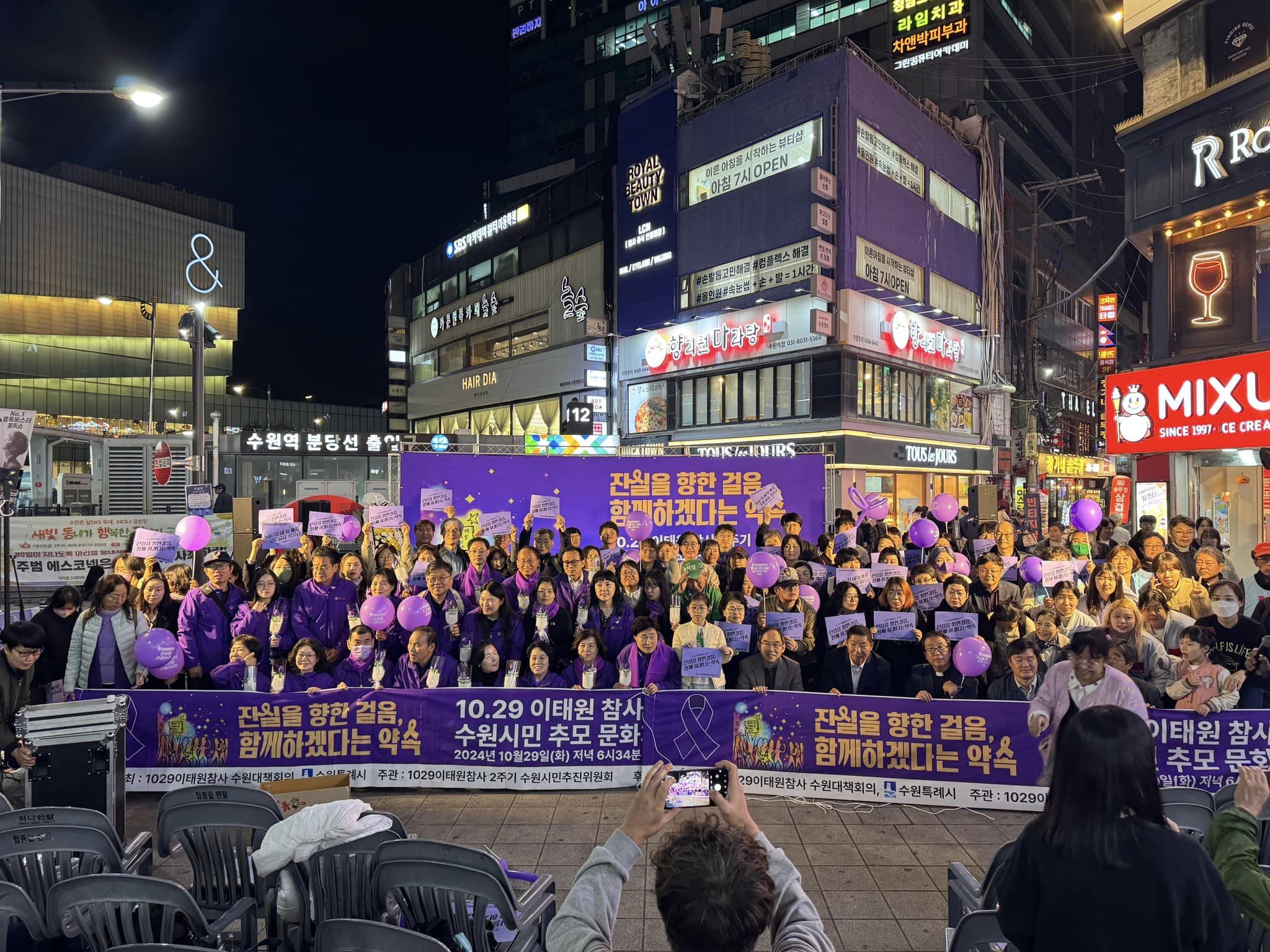 지난 10월 29일 10.29 이태원참사 2주기를 맞아 수원시민 추모 문화제가 수원역 문화광장에서 진행되었습니다. 수많은 분들이 문화제에 함께 해주셨고, 지나가다가 잠시 걸음을 멈추고 추모제를 지켜보는 시민들도 많이 계셨습니다. 그런데 추모제를 하고 있는 저희를 보며 "아직도" 라는 말을 하는 시민이 있었습니다.