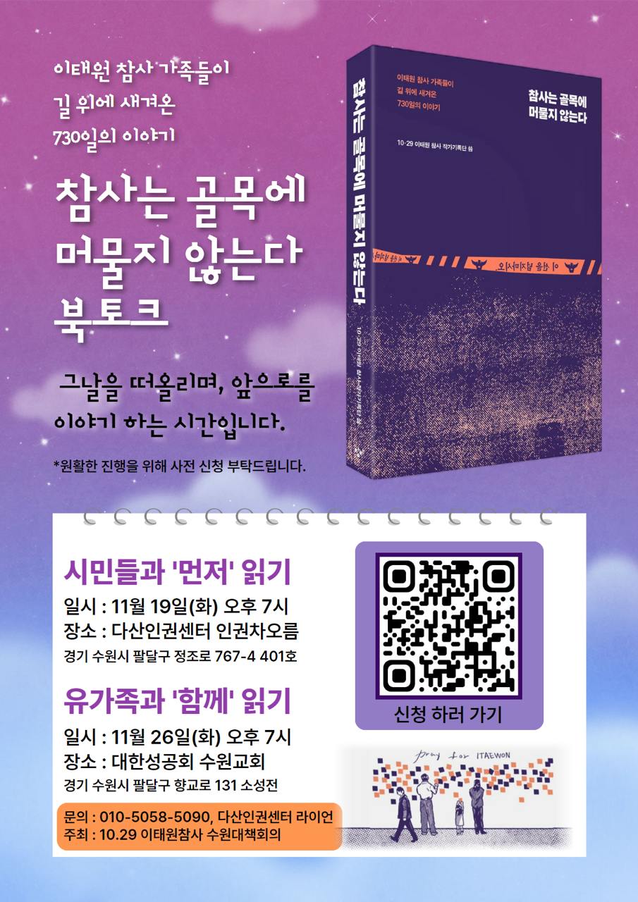 [참사는 골목에 머물지 않는다] 북토크에 함께 해주세요.