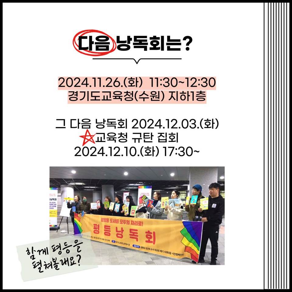 | 경기도 교육청 앞 첫 번째 평등낭독회가 열렸습니다. (0) | 2024.11.21 |