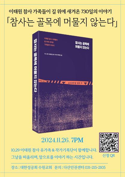 | ‘참사는 골목에 머물지 않는다’ 북토크 진행했습니다. (0) | 2024.11.27 |