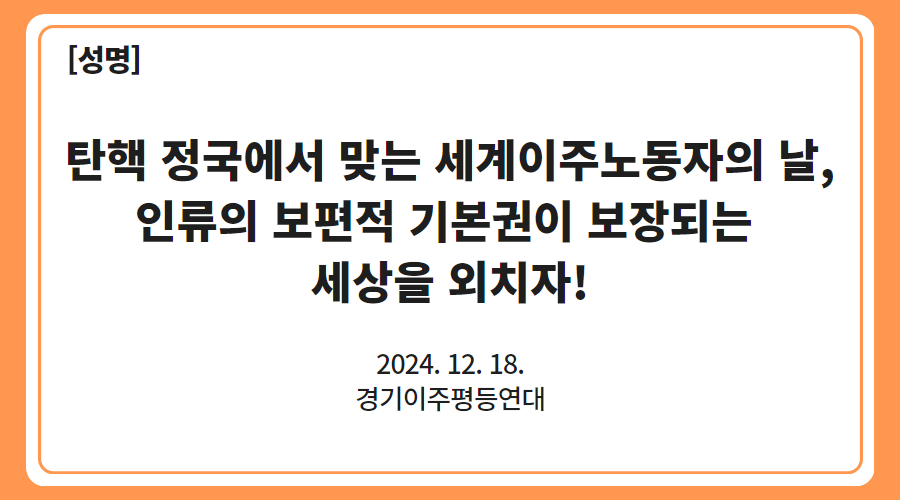 탄핵 정국에서 맞는 세계이주노동자의 날, 인류의 보편적 기본권이 보장되는 세상을 외치자!