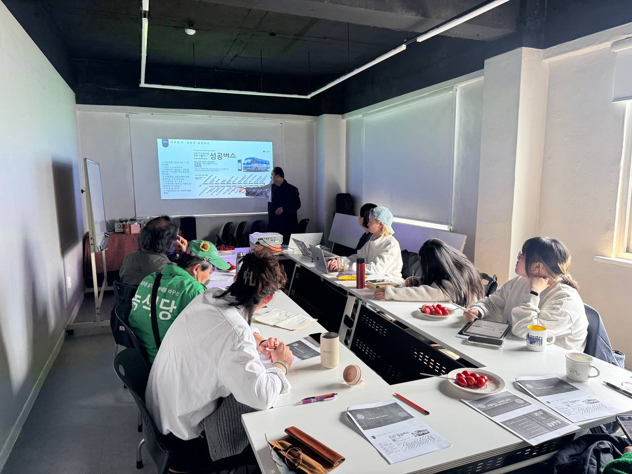 지난 4월10일 공공교통네트워크 김상철 정책센터장을 초대하여 공공셔틀버스 운영의 의미와 확대의 필요성을 주제로 세미나를 진행했습니다. 단순한 이동수단을 넘어 공공셔틀버스가 갖는 다양한 사회적 의미를 토론하고 학습하는 시간이었습니다. 또한, 타 지역의 공공셔틀버스 운영 사례를 살펴보며 수원지역의 공공노선과 공공셔틀버스 확대의 필요성이 더욱 명확해 졌습니다. 모두의 버스는 이번의 세미나를 바탕으로 수원시에 공공셔틀버스 운영확대를 위한 국체적인 정책제안을 준비할 계획입니다. 시민들과 소통하여 공감대를 넓히고 실질적 정책변화를 이끌어 낼 수 있도록 꾸준히 활동하겠습니다. 모두의 버스 활동에 관심 있으신 분은 언제든 환영합니다.