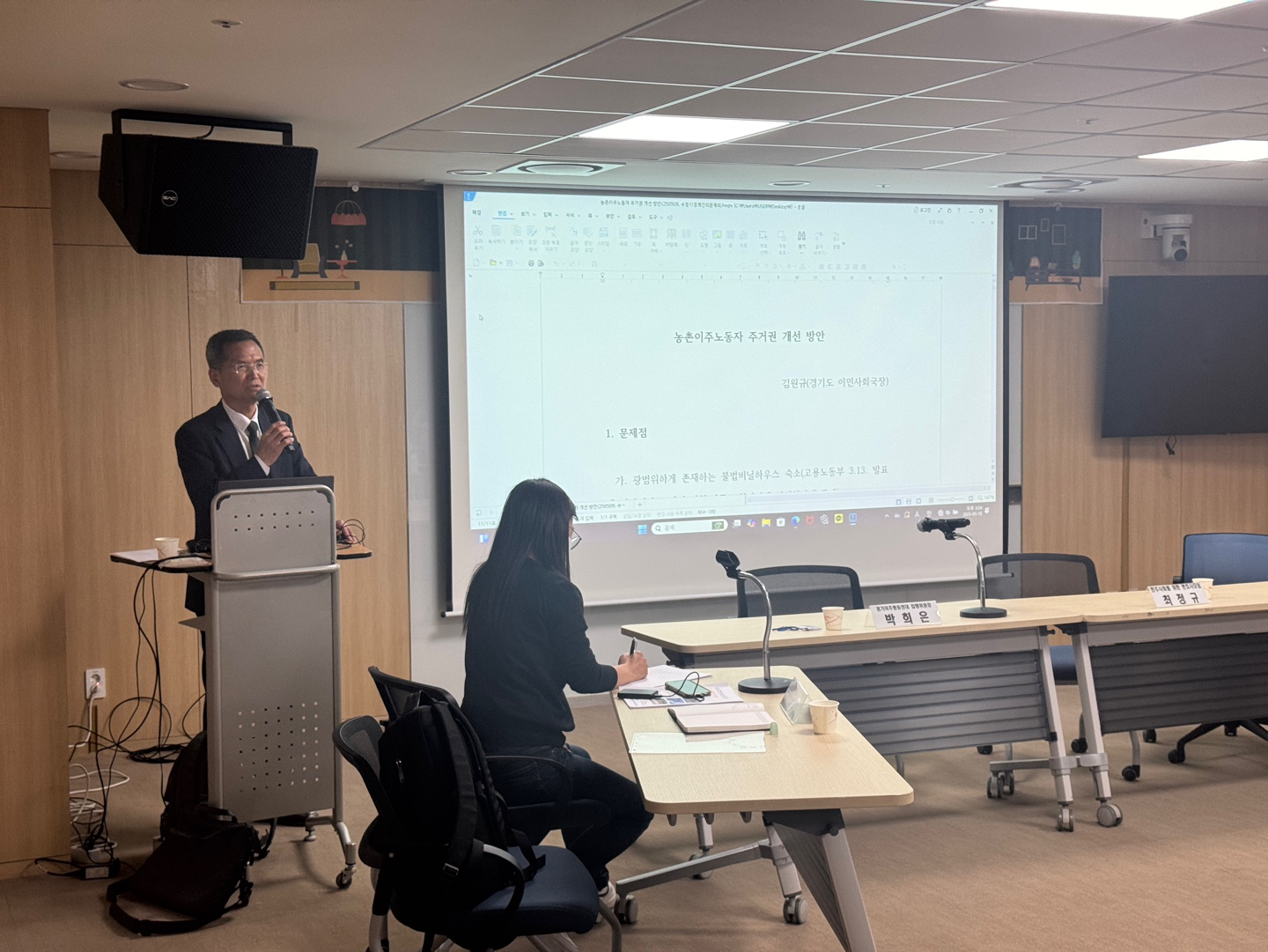 1부는 한상진 정책기획국장(민주노총 경기본부)의 사회로 진행되었으며, 김이찬 대표(지구인의 정류장)와 정영섭 활동가(이주노동자노동조합)는 이주노동자 숙소 상담사례를 중심으로 발표했습니다.