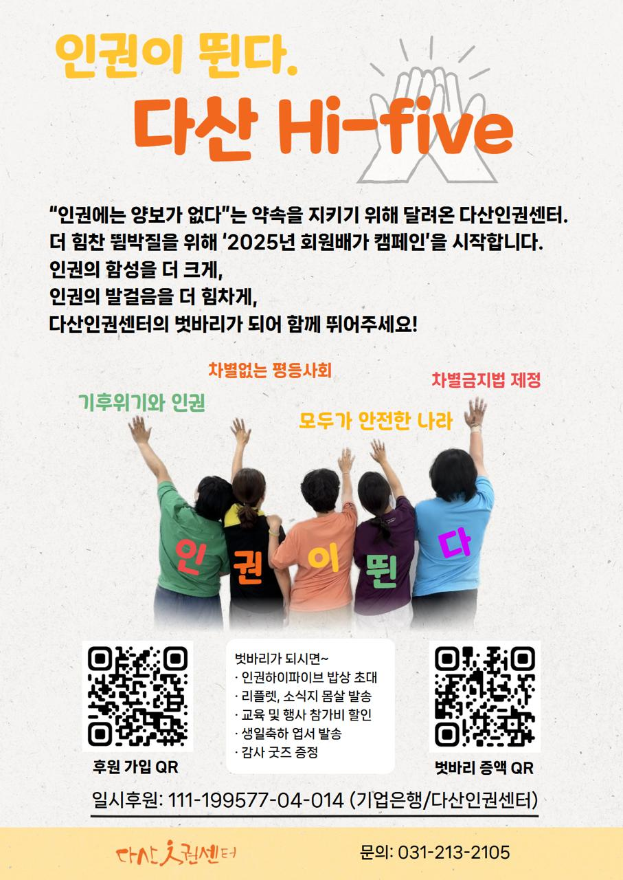 차별철폐! 인권가득! 다산과 손잡고 Hi-Five!