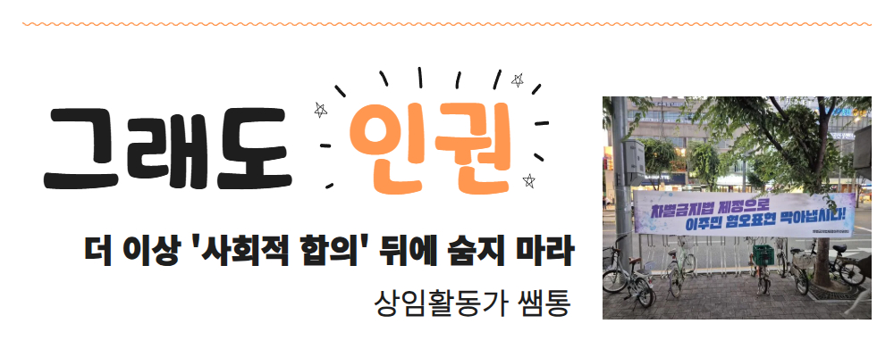 | [웹 소식지 몸살 26호_여름] 그래도 인권_ 더 이상 '사회적 합의' 뒤에 숨지 마라. (0) | 2025.07.23 |