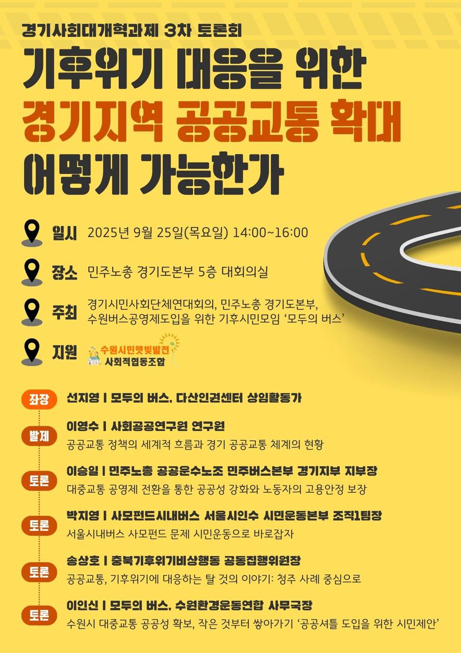 - 경기시민사회단체연대회의, 민주노총 경기본부, 수원버스공영제도입을 위한 기후시민모임‘모두의 버스’