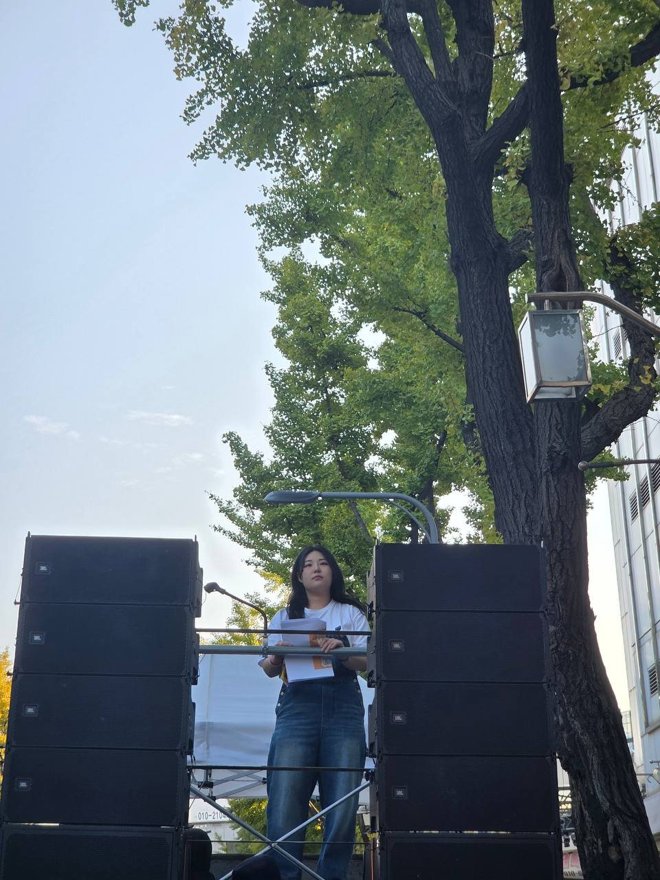 그리고 2025차별철폐대행진 사회를 라이언과 함께 진행하기도 했네요! 차별철폐대행진 사회를 처음 제안 받았을 때... 솔직히 너무 촉박하기도 하고, 잘 알지 못하는 분야라고 생각해서 망설였어요. 고민 끝에, 지금 제가 속해있는 여성폭력피해자 지원단체인 수원여성의전화가 원하는 성평등한 사회와 2025차별철폐대행진이 바라는 차별과 혐오 없는 세상이 같은 선상에 있다는 결론을 냈습니다. 사실 2018년부터 수원여성의전화가 회의 시 마다 읽는 <평등의 조건을 만들어가는 수원여성의전화 구성원들의 약속>은 차별금지법의 내용을 담고있고, 단체에서 발행한 수요논평과 카드뉴스가 ‘차별금지’를 담고 있더라고요. 2025년 수원여성의전화가 계획하지는 않았지만, 같은 선상을 달리고 있었다는 걸 알고나니까 해야겠다고 생각 했던 것 같아요.