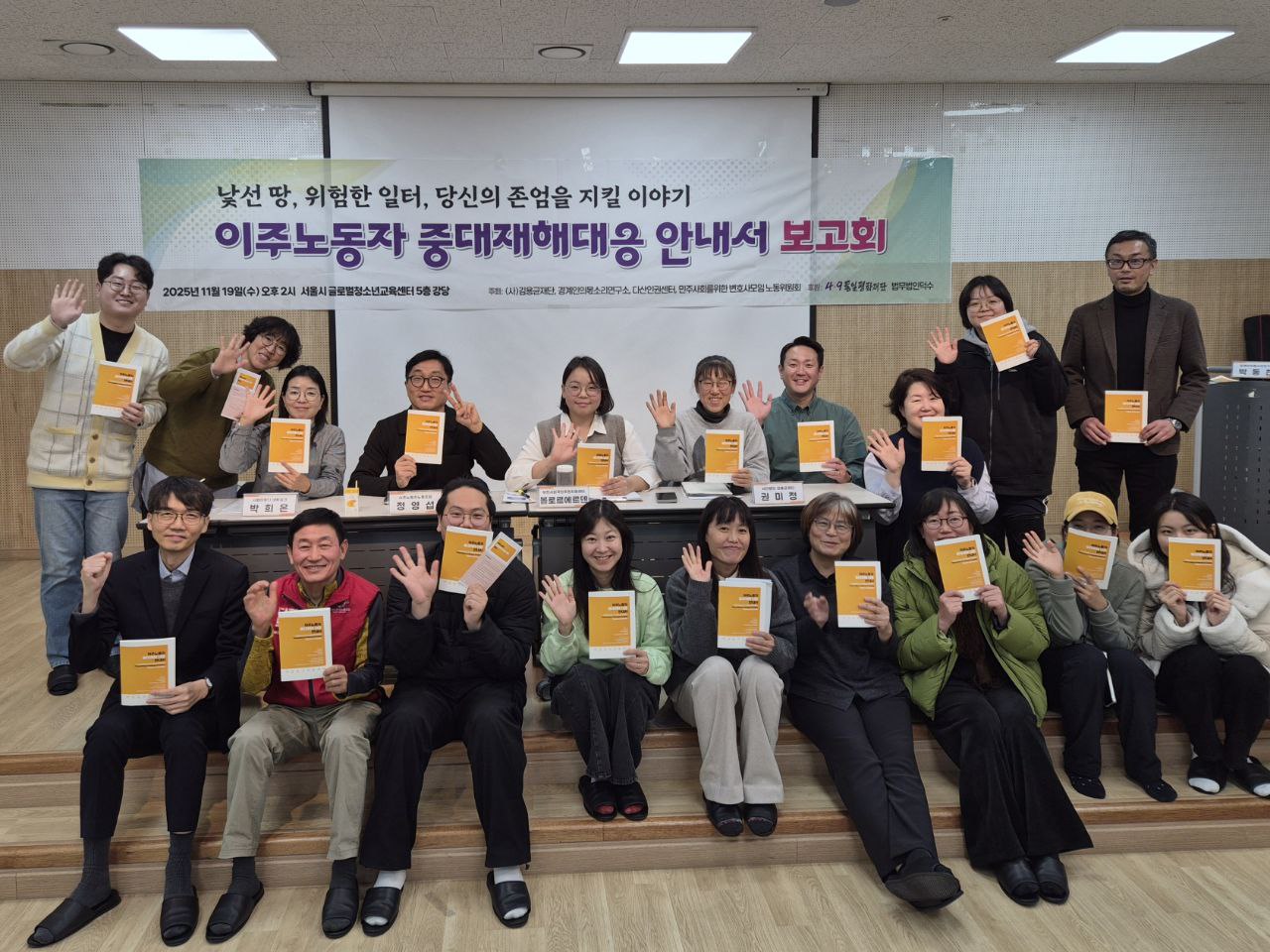 2025년 한해동안 이주노동자들이 산업재해를 경험했을 때 대처하는 방법을 안내하는 <이주노동자 중대재해대응 안내서>를 제작했습니다. 김용균재단, 경계인의몫소리연구소, 민변 노동위원회가 함께 작업을 했는데요. 2024년 아리셀 중대재해참사 대응을 함께하며 이주노동자 산업재해에 대해 으쌰으쌰 힘을 모으기로 했습니다. 1년간 이주노동자 산재 관련 자료를 연구하고, 이주노동자 상담센터 종사자와 산재 지원을 하는 변호사, 병원 종사자 등을 인터뷰 했습니다. 이 내용을 바탕으로 안내서를 제작하고, 11월 19일 내용을 알리는 보고회를 진행하였습니다. 이주노동자 산업재해에만 초점을 맞춘 안내서는 처음 발간되는거더라구요. 2026년에는 이 안내서를 바탕으로 이주노동자 산재 대응의 중요성을 더 많이 알리려고 합니다. 어딘가 가장 아픈 곳, 인권이 필요한 곳을 찾는 일이 다산의 역할이니까요.